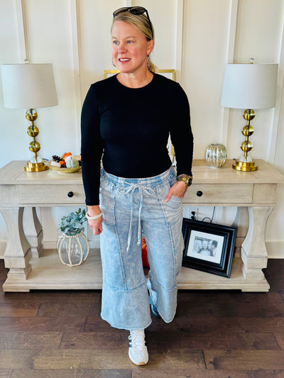 Acid Washed Wide Leg Pants - Ash Black 1x to 3x