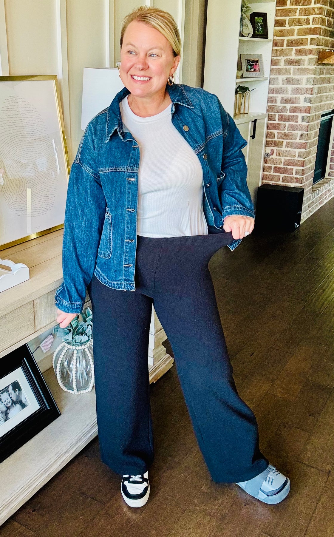 The best-selling fabric is now available in a comfy pull-on pant! The cloudy knit wide leg pants are the pants that feel like leggings, but you can wear to work!  No pockets, so no bulk at the hips!