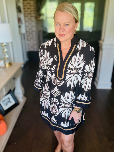 Baroque Floral Dress / Tunic - Black