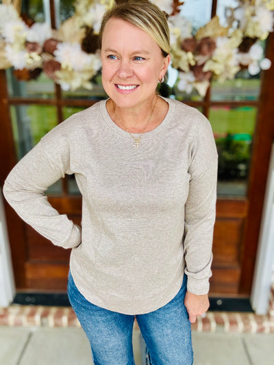 Brushed Microfiber Long Sleeve Top - Beige