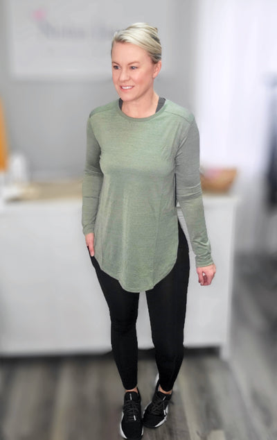 Ribbed Mock Neck Long Sleeve Top - Taupe
