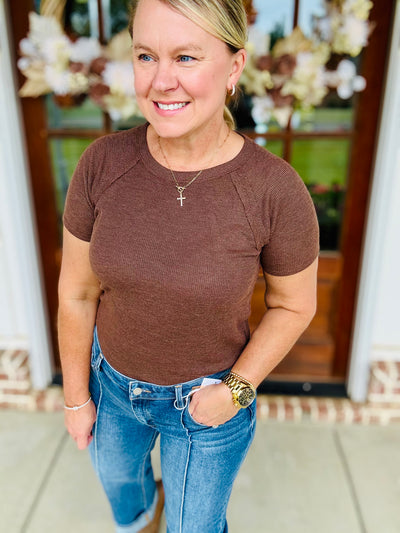 Two Tone Waffle Short Sleeve Top - Ocean Blue