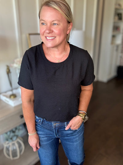 V-Neck Short Sleeve Top - Black