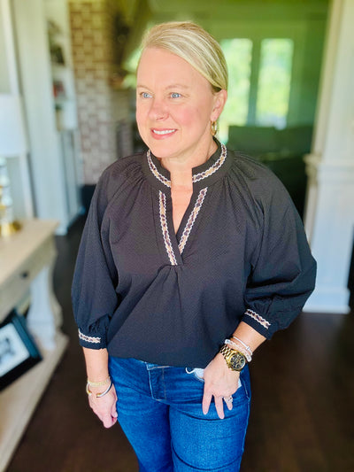Paisley V-Neck 3/4 Sleeve Top - Teal