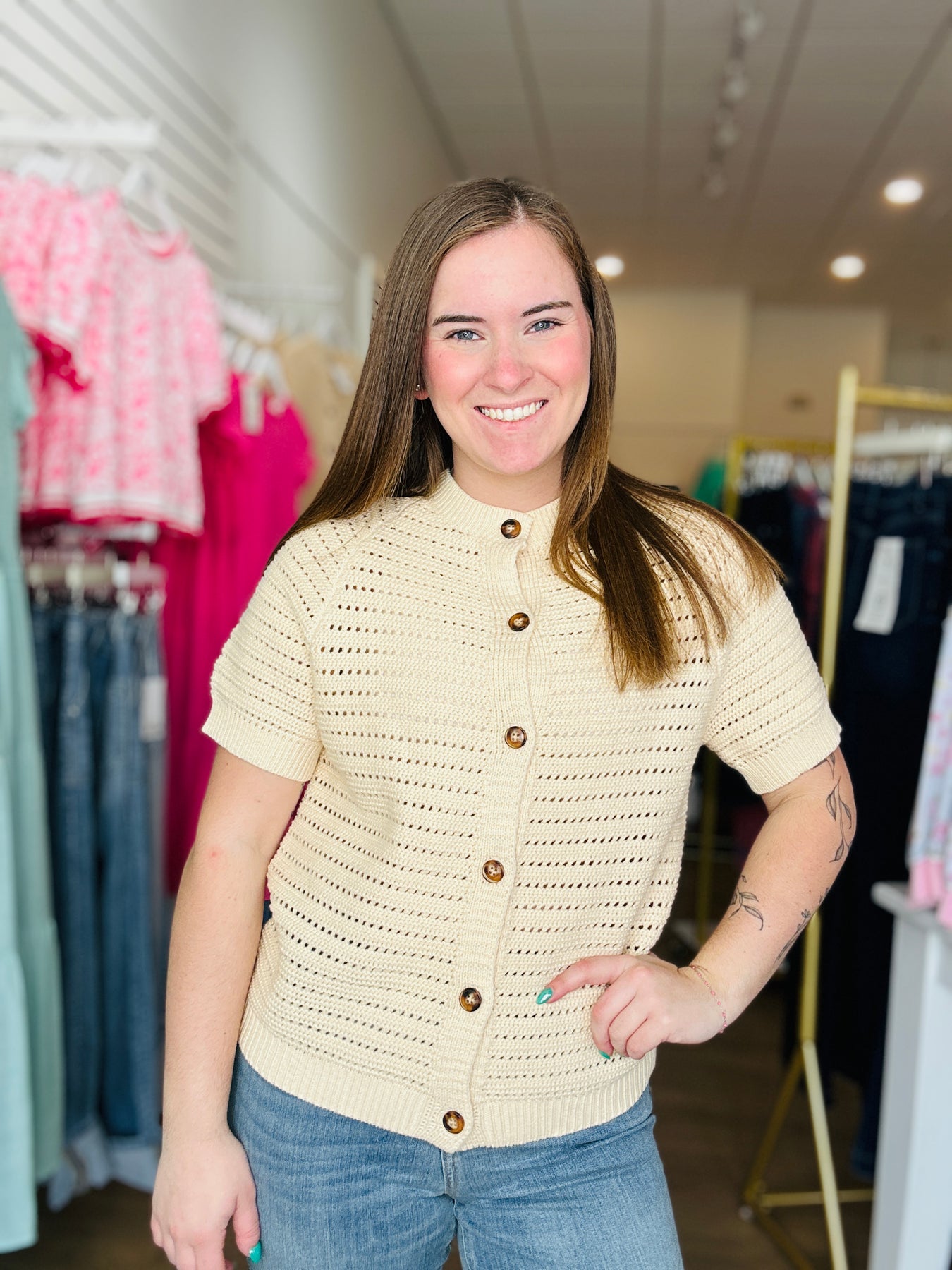 Short Sleeve Knit Sweater - Oatmeal