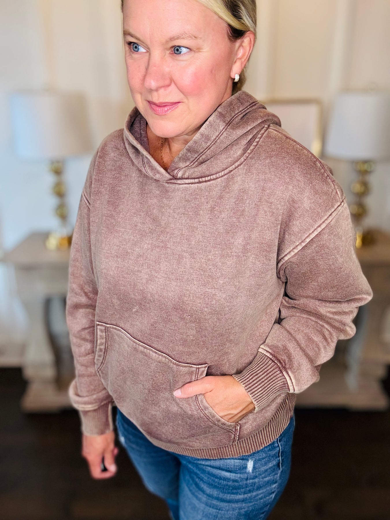 FLEECE ACID WASH KANGAROO POCKET HOODIE