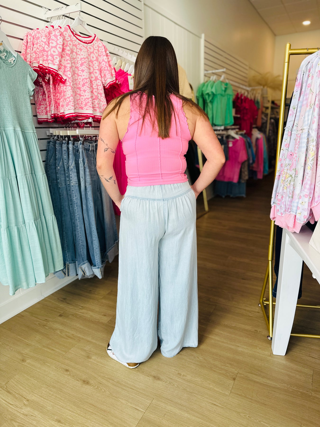 - Mineral Washed Chambray Wide Pants
