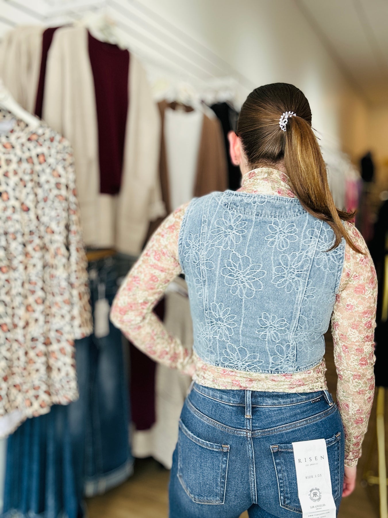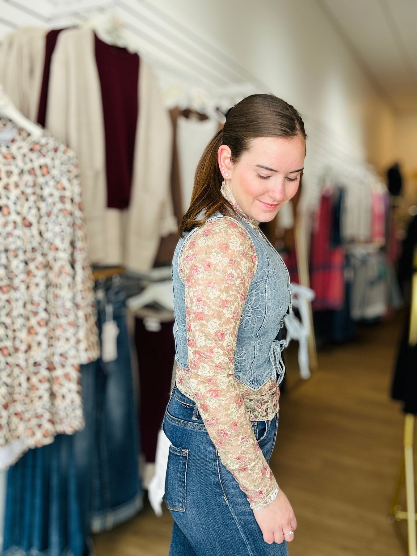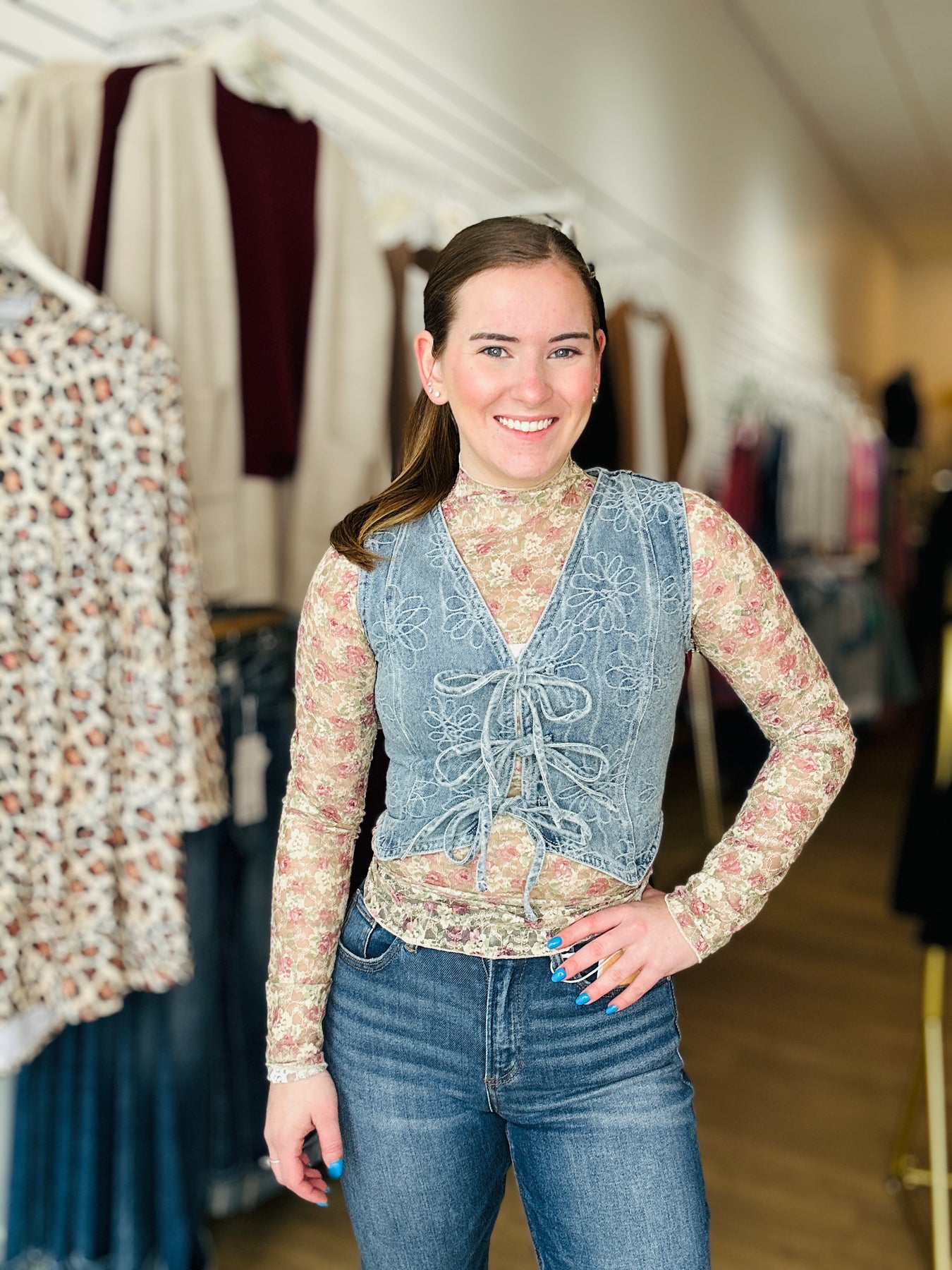 Floral Denim Vest