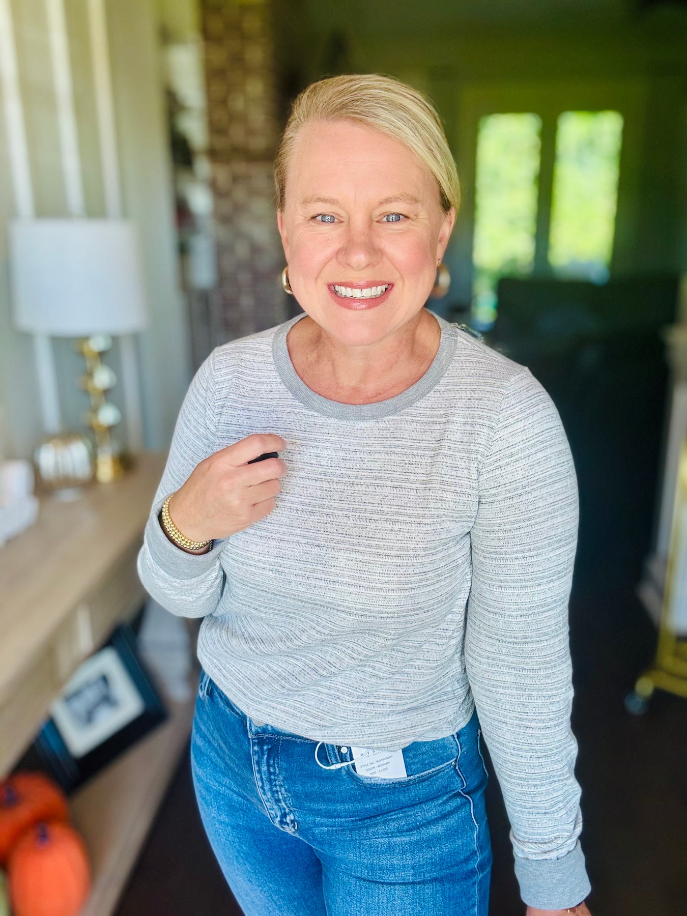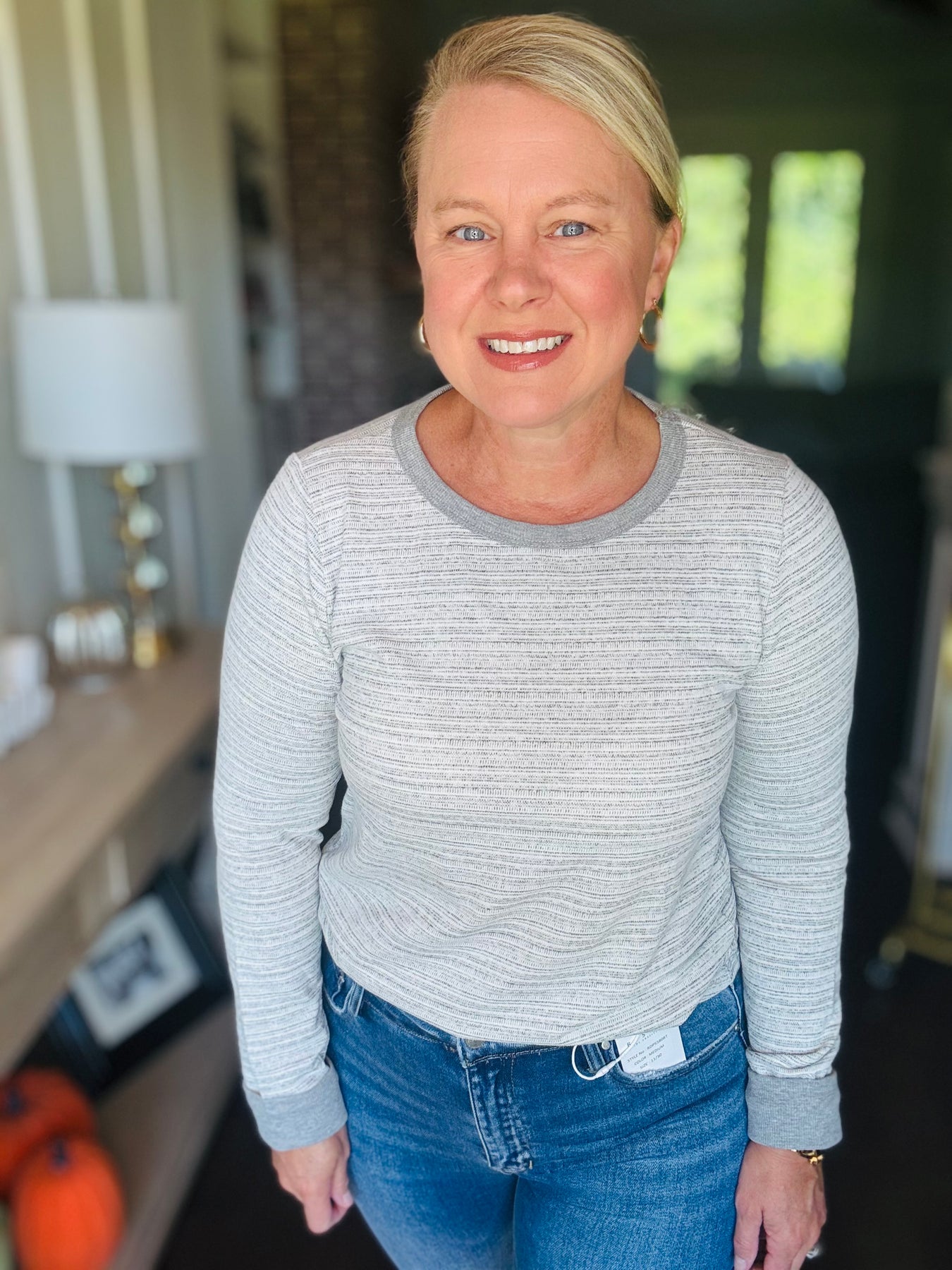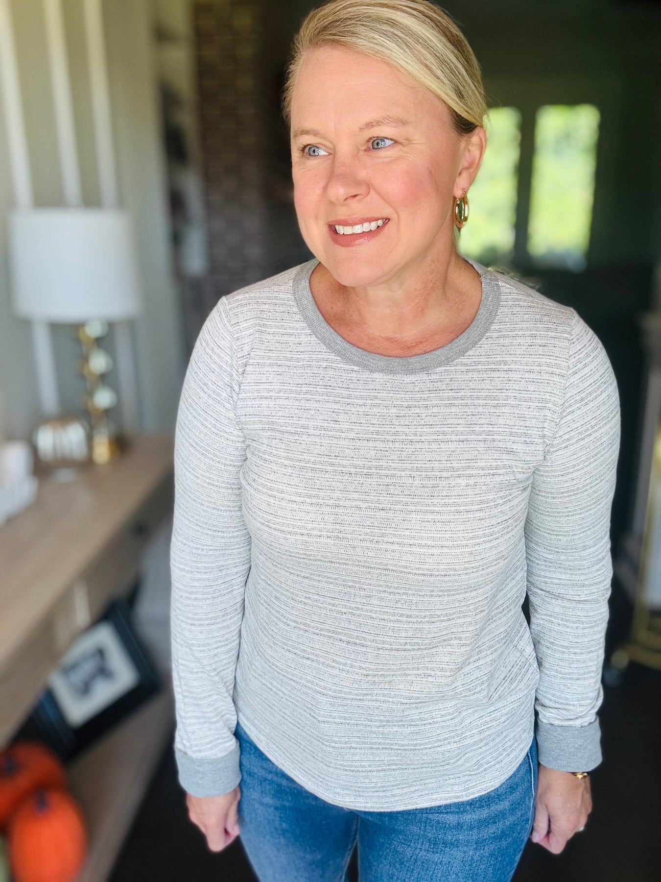 Striped Crew Neck Long Sleeve - Heather Grey